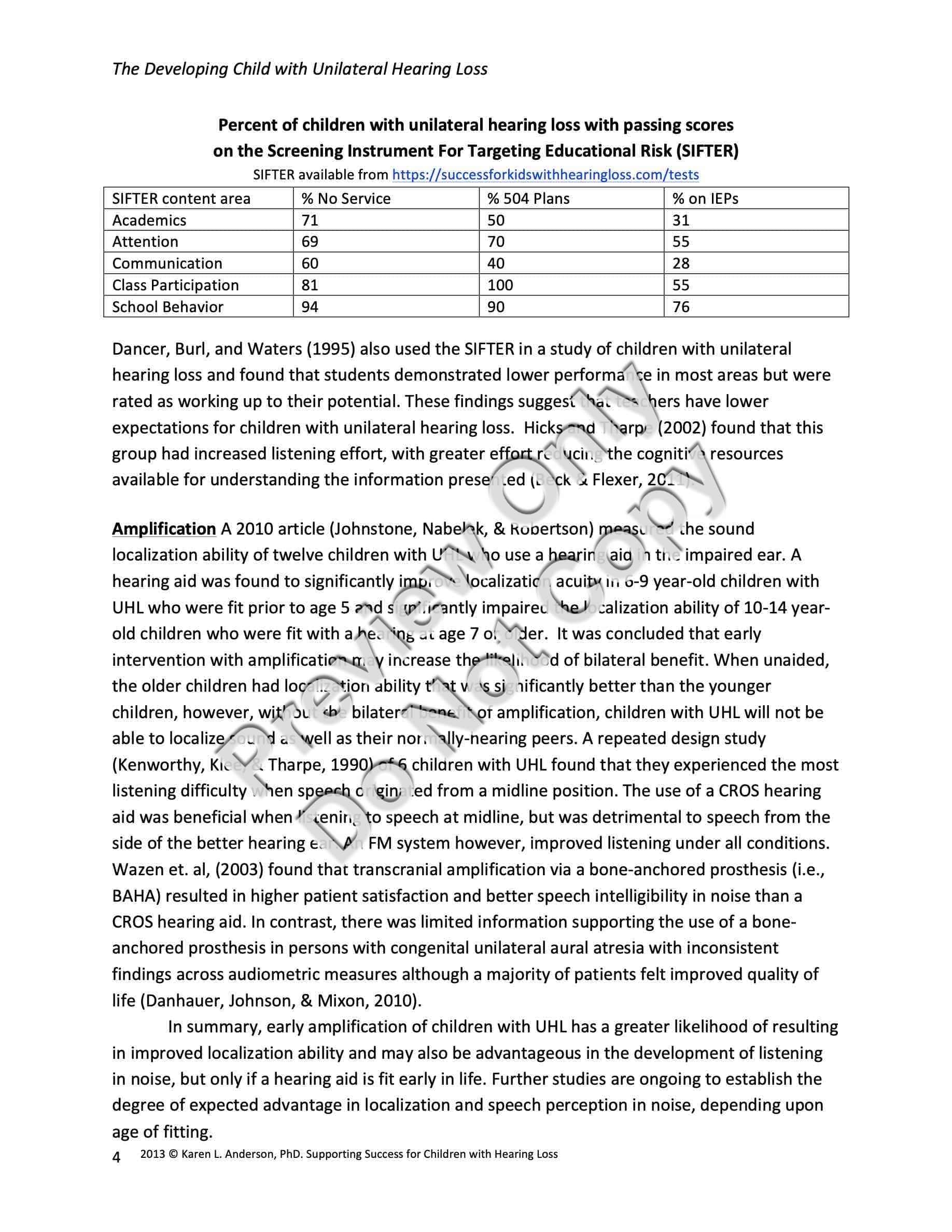Karen L. Anderson, PhD has been in the field of education for children with hearing loss for 40 years. She has authored many handouts, checklists, chapters and books. She established www.successforkidswithhearingloss.com in 2011 including authoring much of the website information, bimonthly update newsletters, and has been an active speaker nationally and internationally. Karen has been called the 'handout queen' and enjoys sharing practical resources.