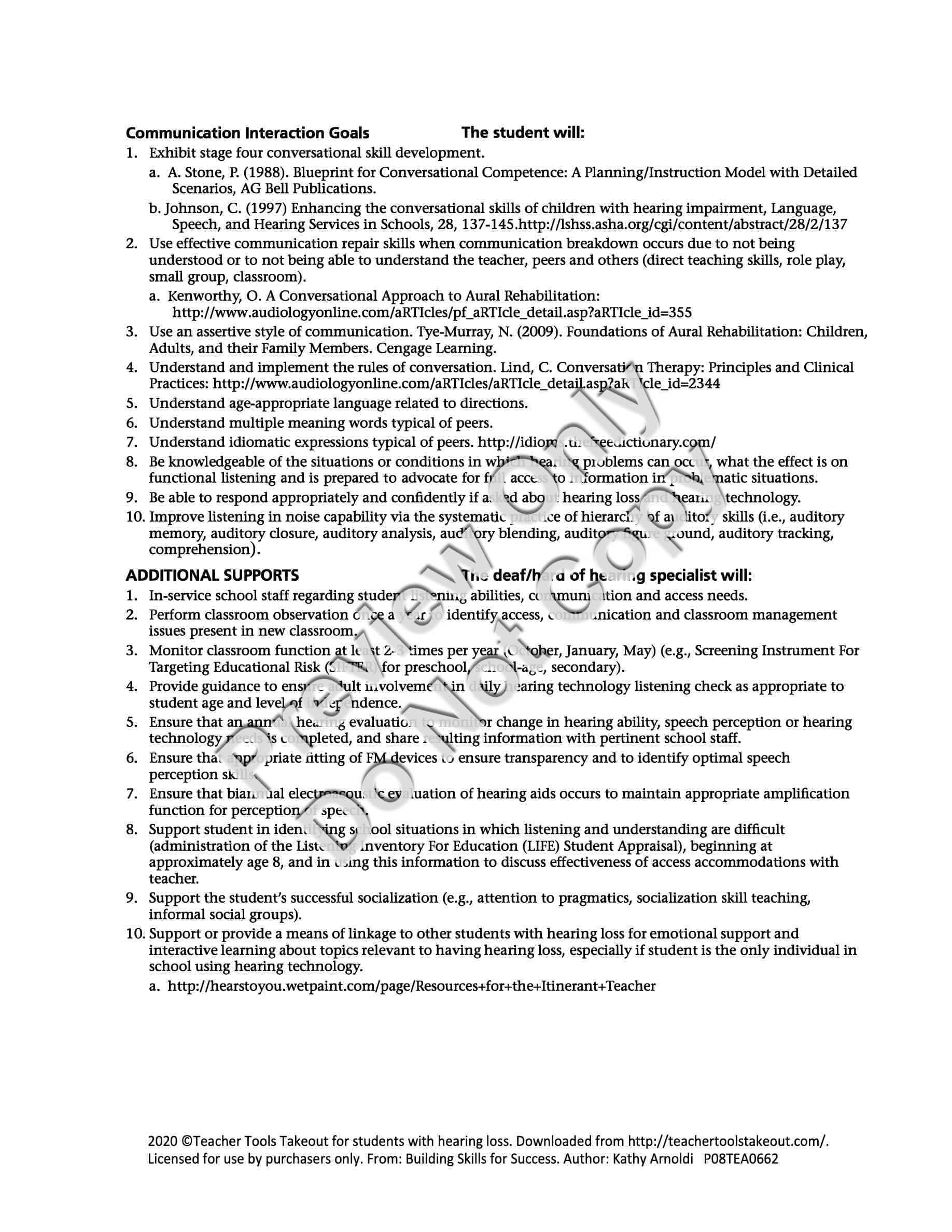 Kathleen A. Arnoldi, M.A., worked as a teacher of the Deaf/Hard of Hearing and a lead teacher for St Paul (MN) Public Schools’ Programs for Deaf/Hard of Hearing Students for 37 years and taught in the University of Minnesota in the Deaf/Hard of Hearing Teacher Training Program. She participated in writing pertinent legislation for students with hearing loss and their families, developing eligibility criteria for special education services and creating licensure requirements for teachers of the Deaf/Hard of Hearing in Minnesota. Kathy is certified in Elementary Education and Deaf/Hard of Hearing Education, birth through age 21, and holds a master’s degree in Educational Administration. She has collaborated with Karen Anderson to develop continuing education webinars and consultation services for parents and professionals via Supporting Success for Children with Hearing Loss.