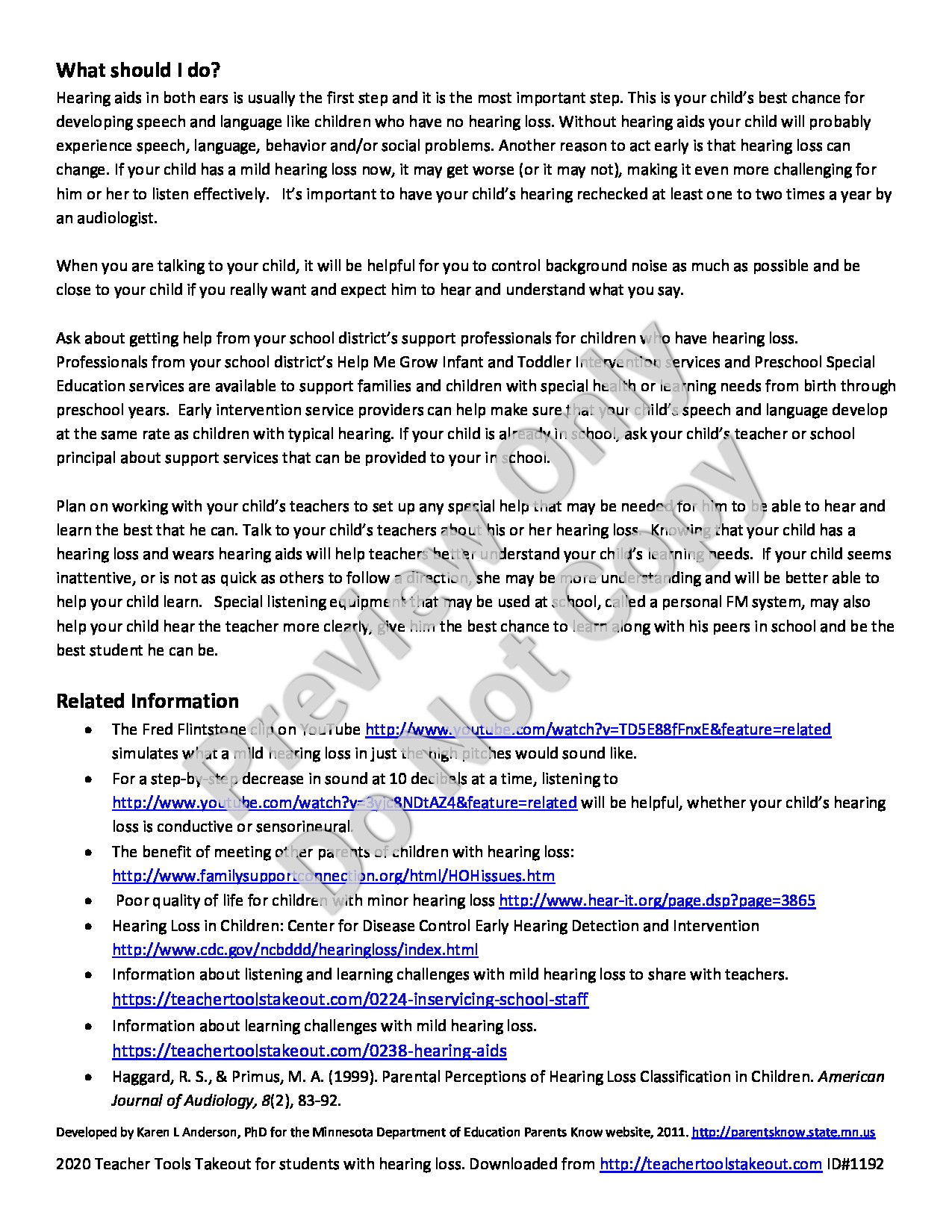 This resource provides an overview of the impact of mild hearing loss on child development, interactions, and learning.