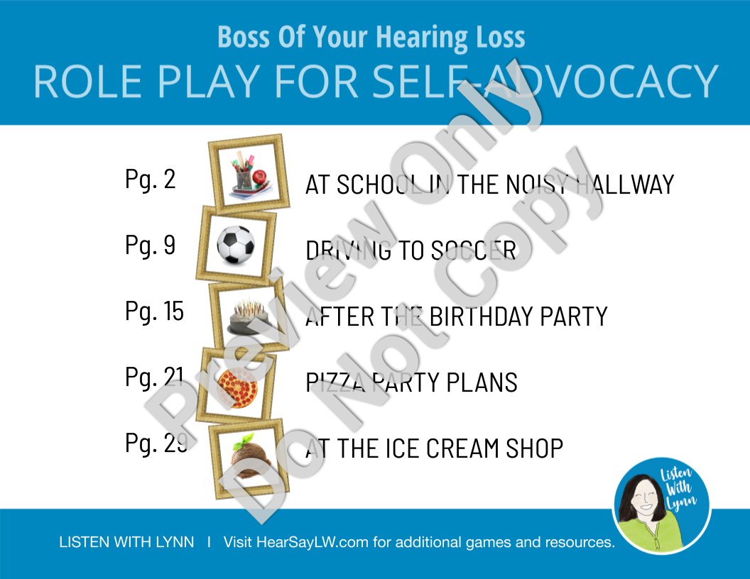 This Self Advocacy For Role Play is also available as a Boom Deck in the Listen With Lynn Boom Learning Store. To use Boom Cards, you must be connected to the internet.