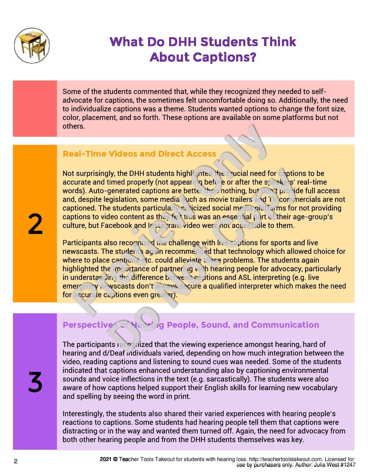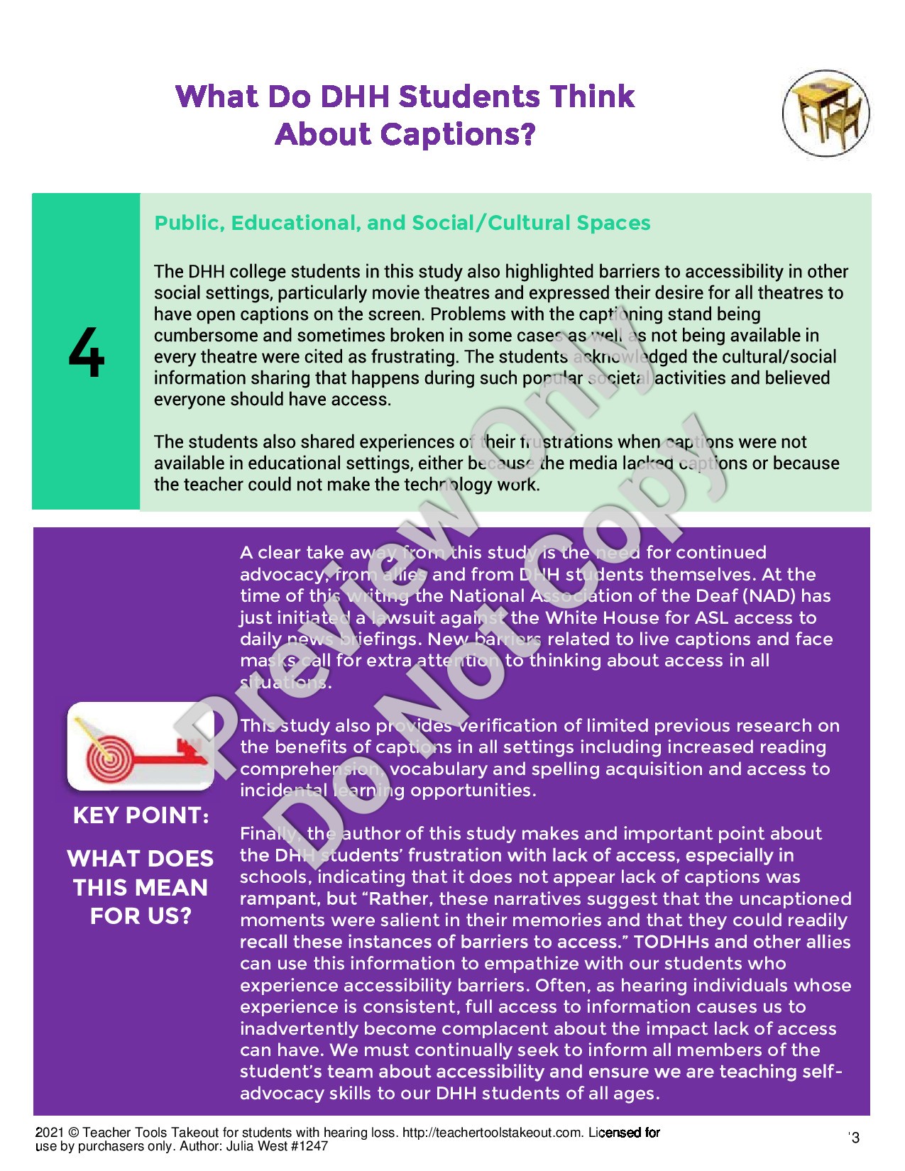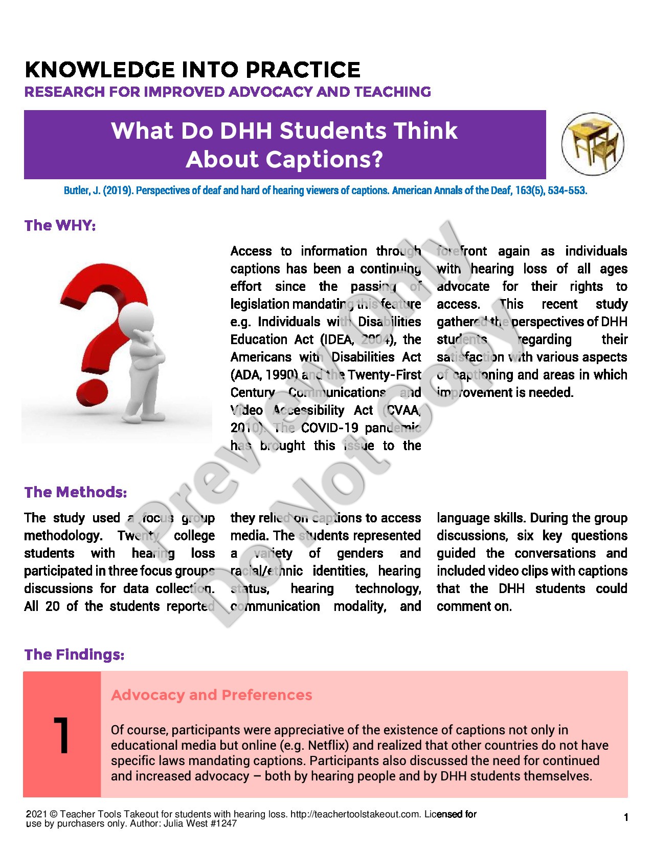 Shop Now| Discussion of a 2019 study results gathered the perspectives of DHH students regarding their satisfaction with various aspects of captioning and areas in which improvement is needed. Four key findings and a summary are included |