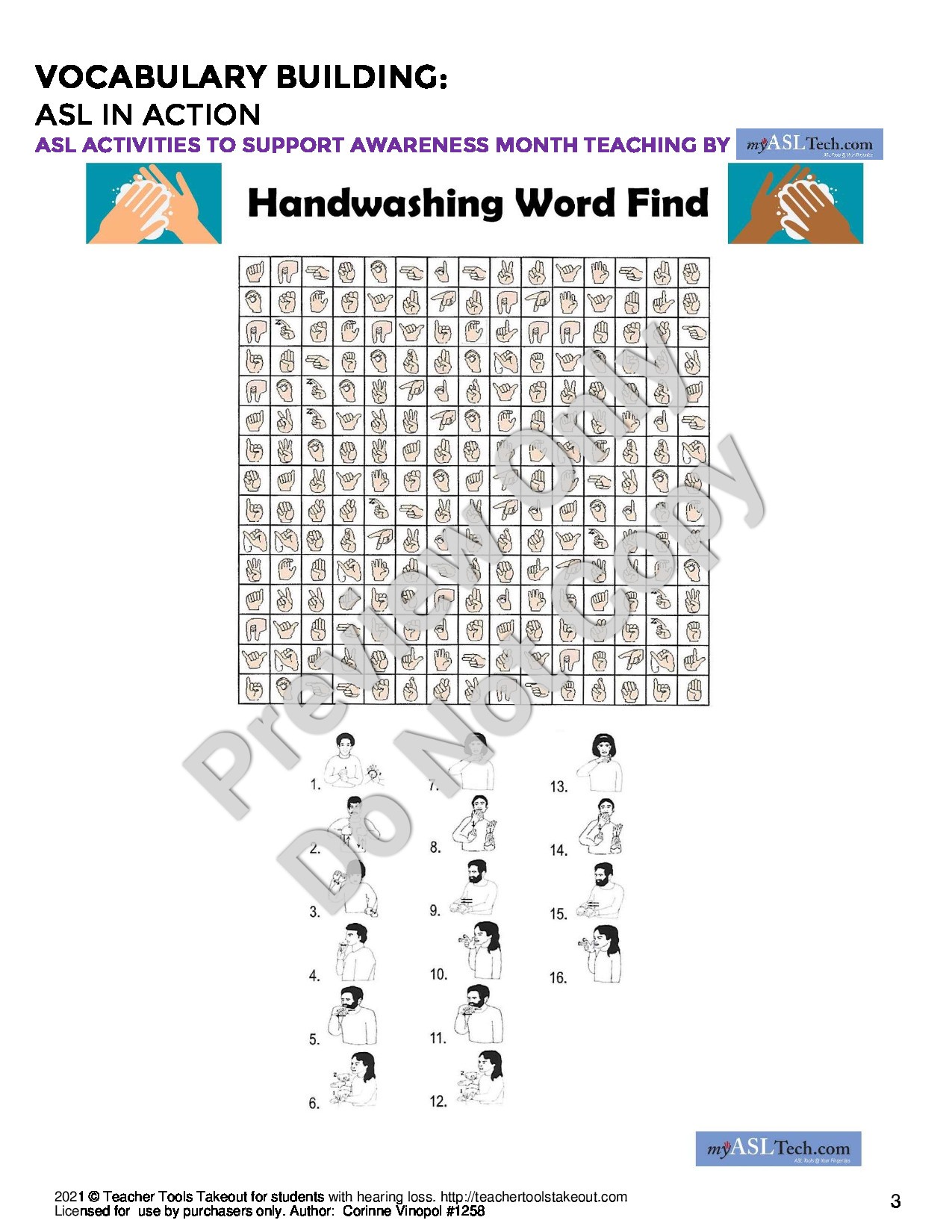 Shop NowThis item contains a poster with ASL signs related for washing hands, pandemic, social distancing, etc. It also has a print and do handwashing word find in fingerspelling and repeated in English. |