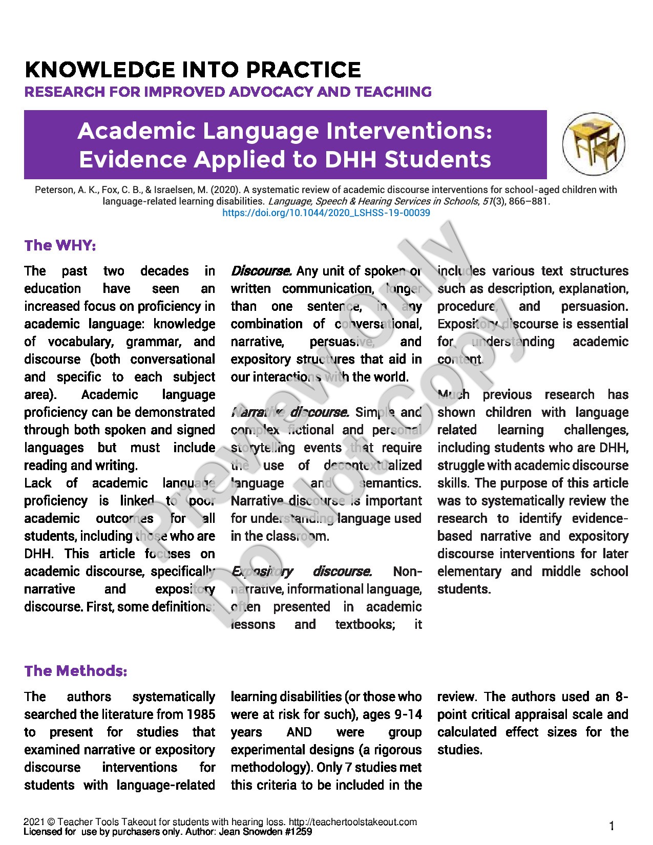 Shop NowThis article discusses the findings of a 2020 study that focused on narrative and expository discourse in academic situations to identify evidence-based interventions for later elementary and middle school students. Key findings and summary included. |