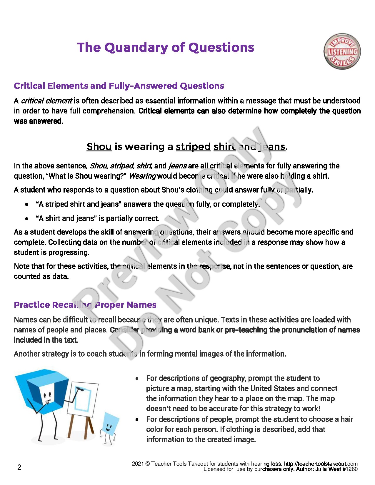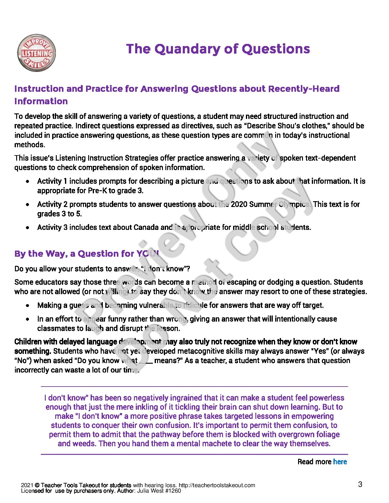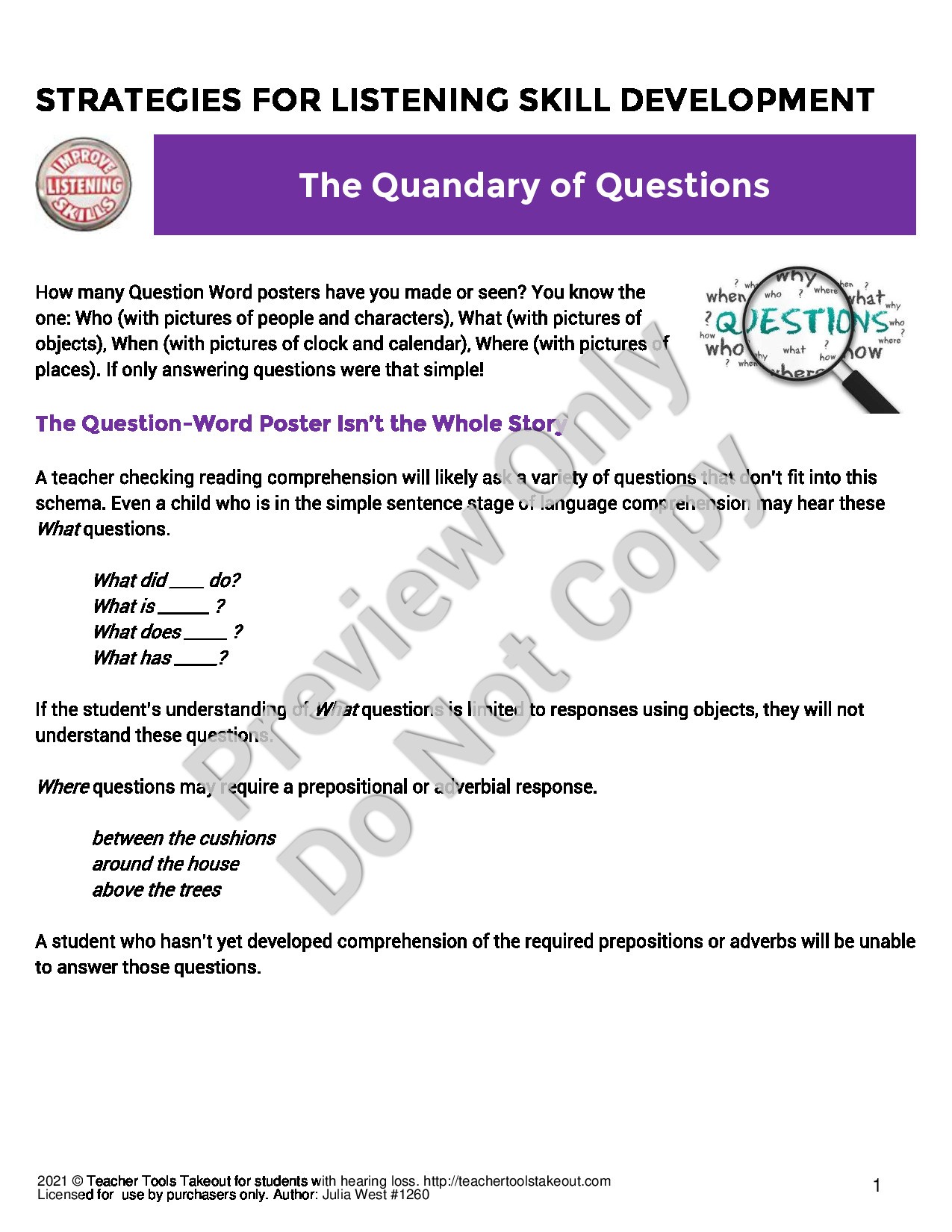 Shop Now| This exceptional article goes beyond the who, what, when, where, how of questions and digs into what students need to know at a deeper level, when comprehending how to most appropriately answer questions. |