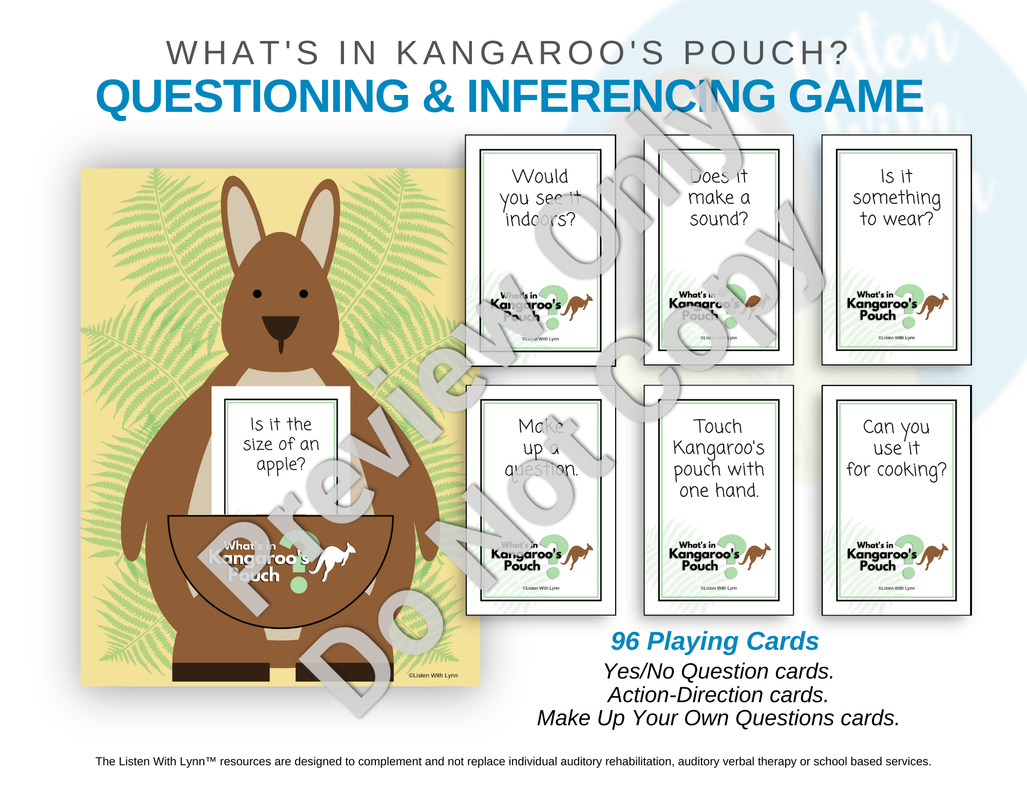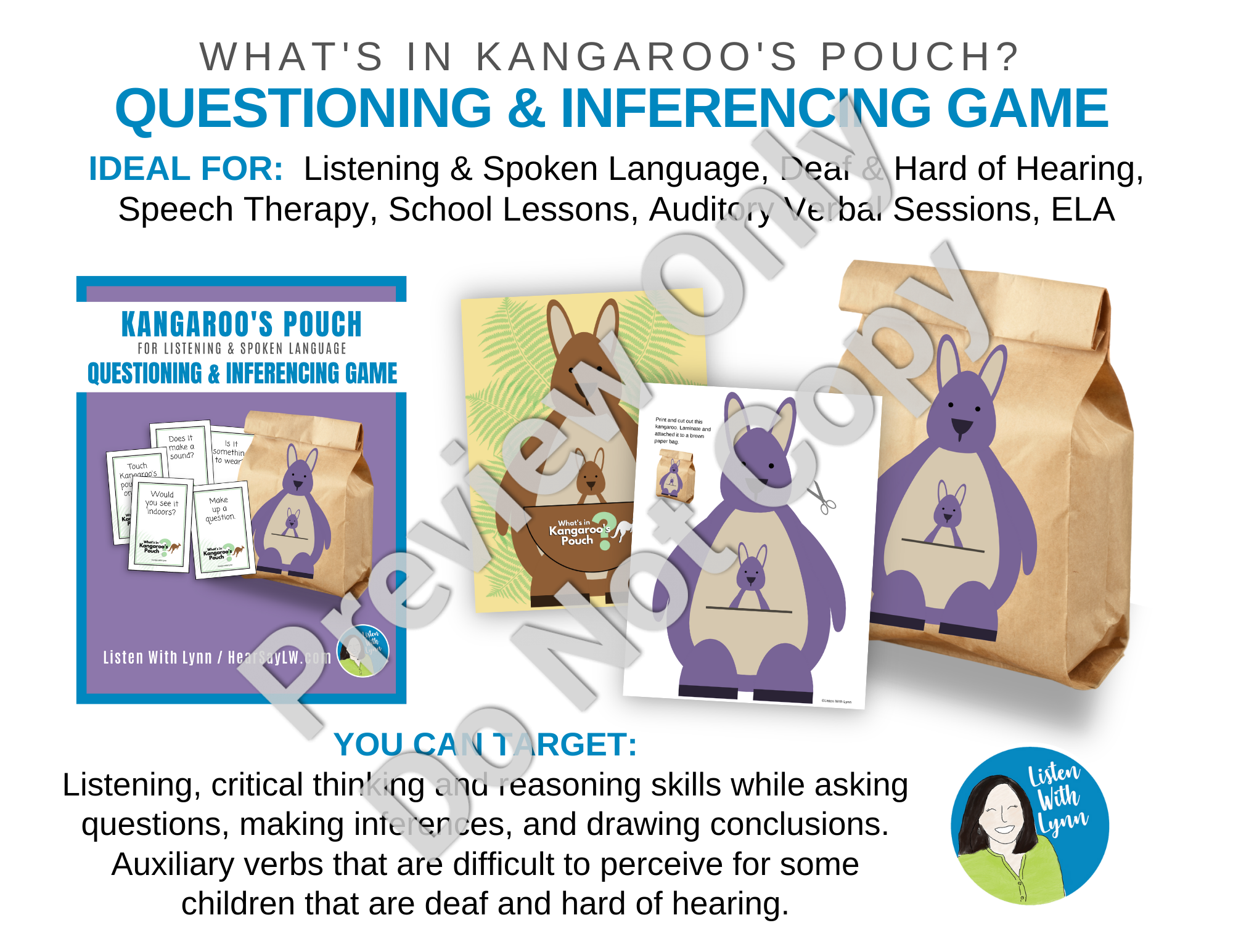 Shop NowGet the kids LISTENING and ENGAGED in this QUESTIONING and INFERENCING LANGUAGE GAME. Players LOVE to take turns secretly hiding and guessing the toys and common objects in the kangaroo's pouch. The game is designed to play over and over again all year round.