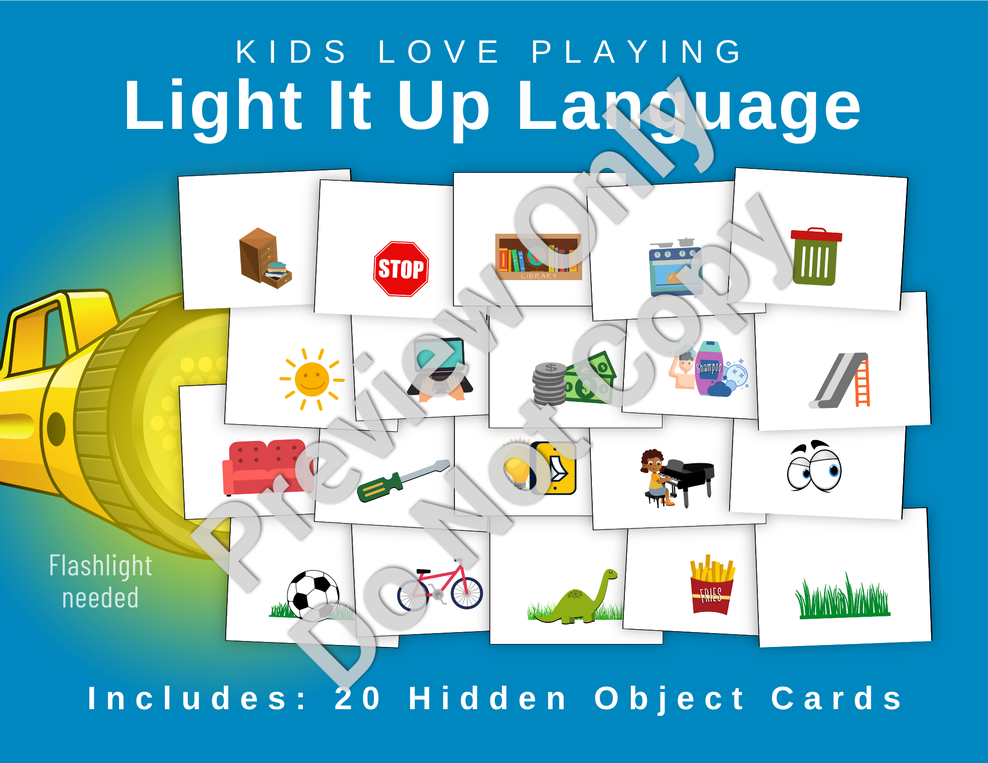 Shop NowKids love Light It Up Language! Kids listen to clues to identify 20 hidden pictures. The magic happens by lighting up the “What Do You Hear?” cards. The cards are held up to sunlight or a flashlight and the picture magically appears on the screen from behind. The trick is that a hidden picture is glued behind a blank tablet screen.