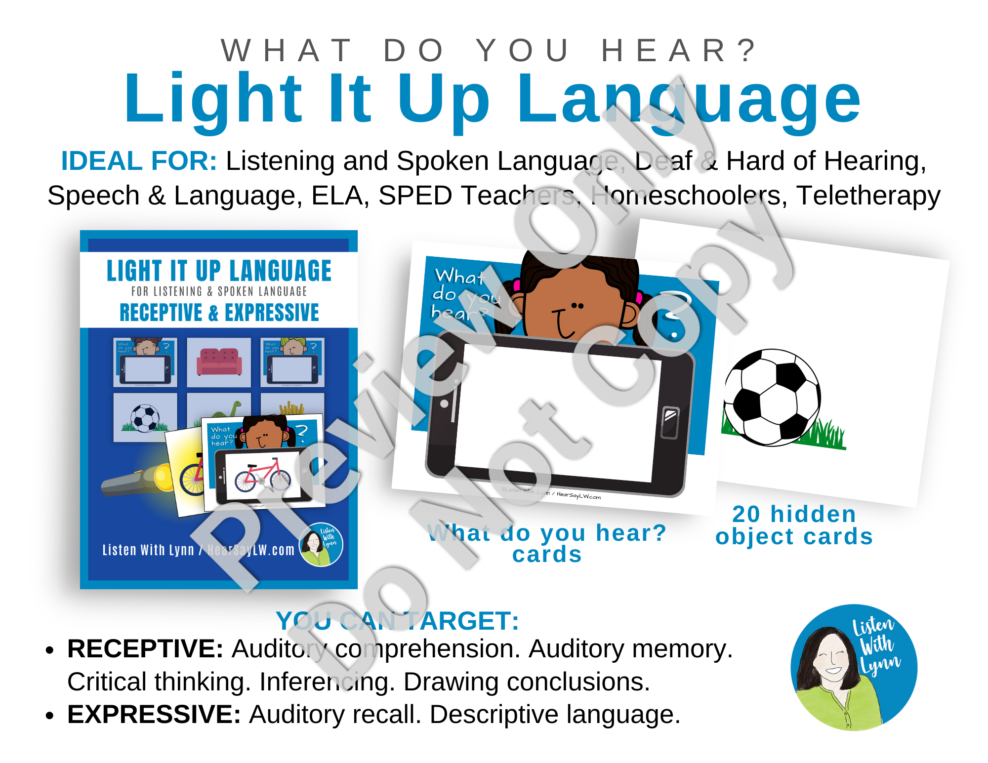 Listening & Spoken Language, Deaf & Hard of Hearing, Speech and Language Therapy, School Lessons, Auditory Verbal Sessions, PreK-K and Primary Teachers, SPED Teachers, ELL Teachers, ESL/EFL Teachers, Homeschoolers, Teletherapists