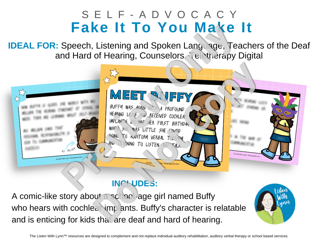 FAKE IT TO YOU MAKE IT is a fun and motivating no-prep grab & go SELF-ADVOCACY resource for elementary and middle school-aged kids who are deaf and hard of hearing. If you're looking for a new twist to self-advocacy lessons you are at the right place.