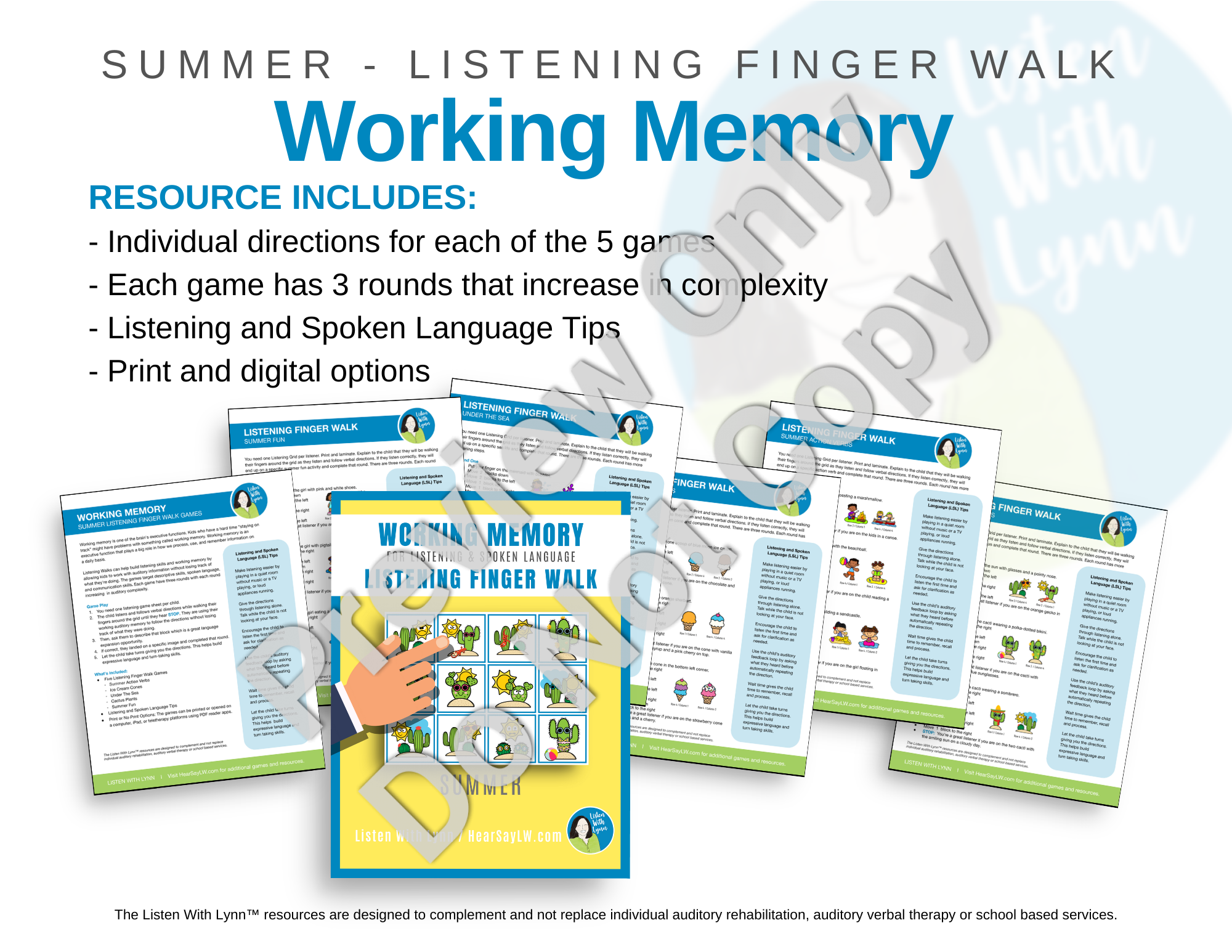 Summer Listening Finger Walks are a must-have for kids that need help with auditory working memory, executive functioning, and following directions.