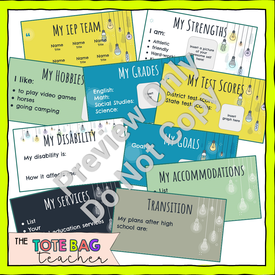 This presentation is perfect for students to present their information at their own IEP meeting in a student-friendly way. It's completely customizable and editable, so it will work with any student.