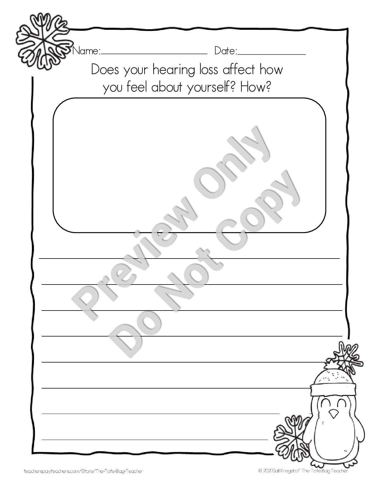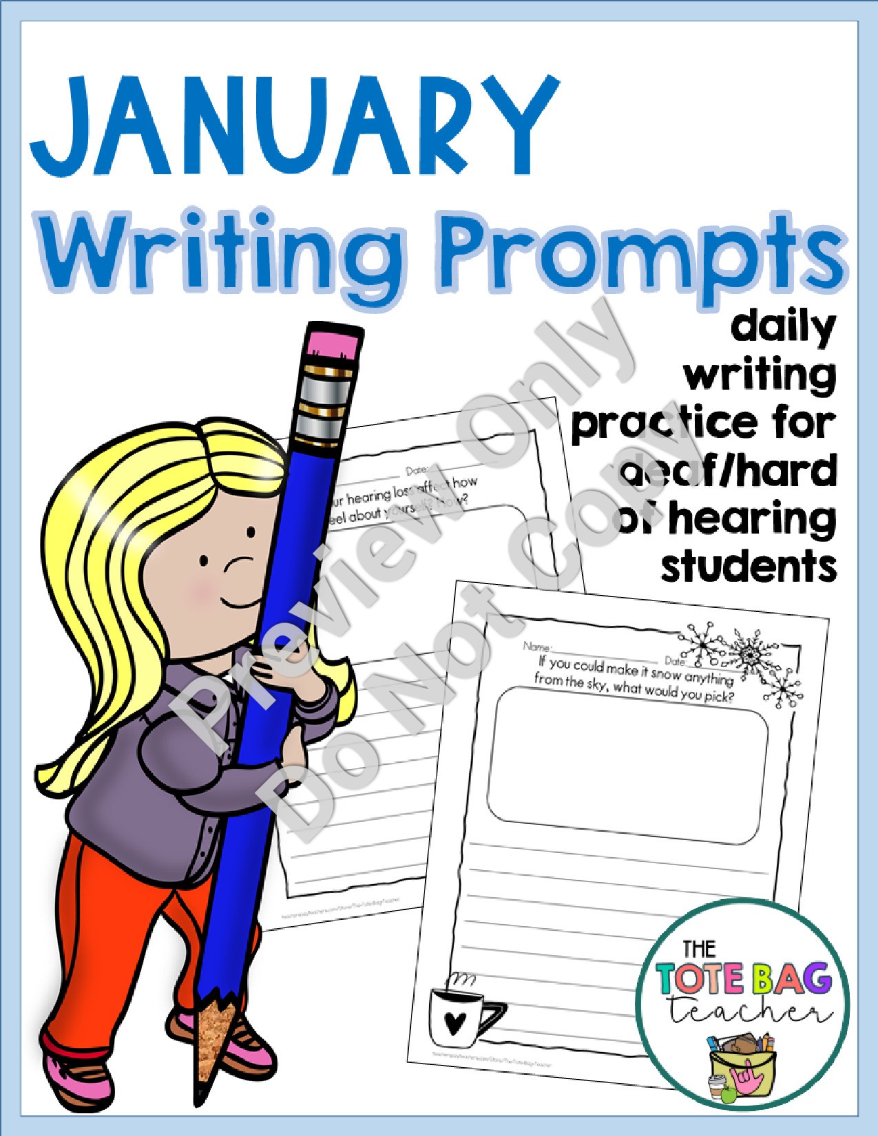 I use these daily with my deaf/hard-of-hearing students. They have 10 minutes to write uninterrupted. I encourage them to continue writing for the entire time, even if they think they're done sooner. When kept in a binder or folder, these entries are a phenomenal (and easy) way to clearly see their growth.