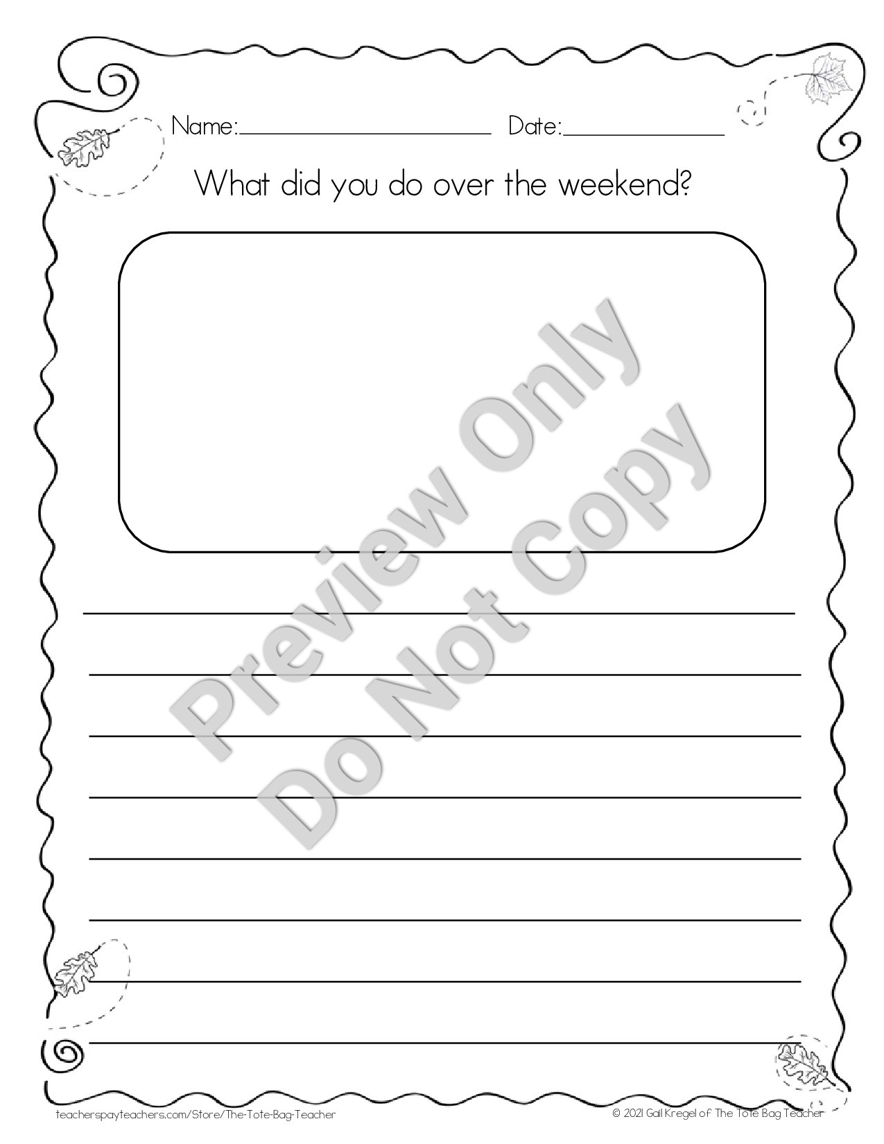 I use these daily with my deaf/hard-of-hearing students. They have 10 minutes to write uninterrupted. I encourage them to continue writing for the entire time, even if they think they're done sooner. When kept in a binder or folder, these entries are a phenomenal (and easy) way to clearly see their growth.