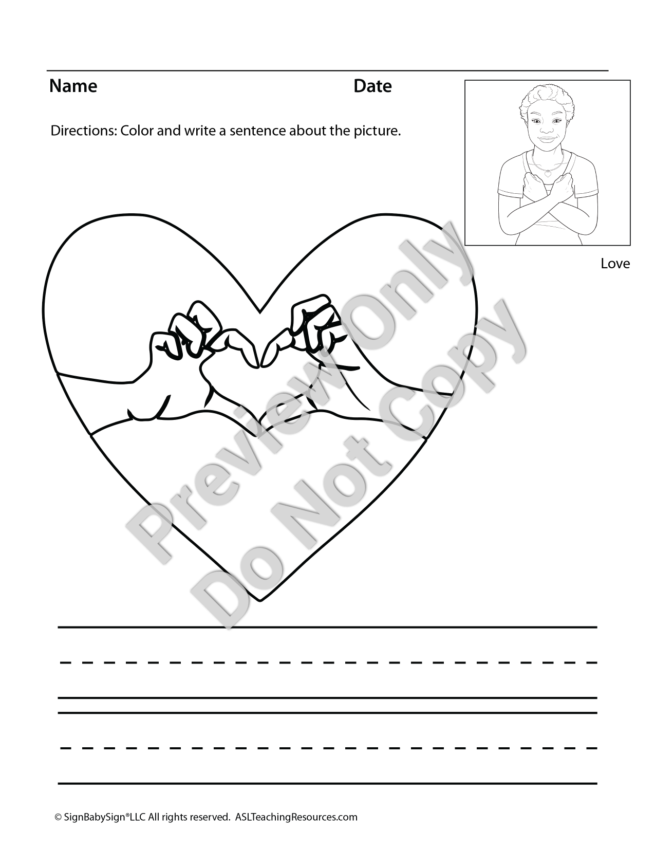 Shop Now"You’re going to love these Valentine Coloring Pages ASL – School Version! Valentine’s Day is a great time to learn Valentine’s sign language while playing all at the same time! These coloring pages feature different Valentine-themed signs that you can use for teaching ASL in a fun and engaging way.