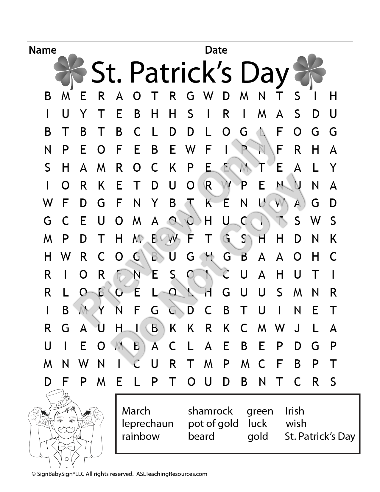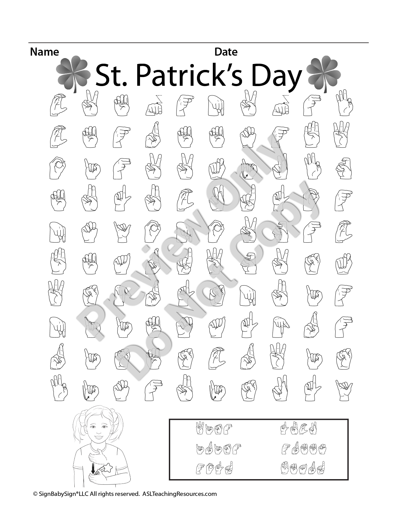 Shop NowThis fun interactive ASL St. Patrick’s Day Word Search Game is a downloadable product ready to use resource for your classroom. Use these St. Patrick’s Day printables to build ASL knowledge and skills by putting them to the test! You and your students will have fun while practicing recognizing vocabulary!