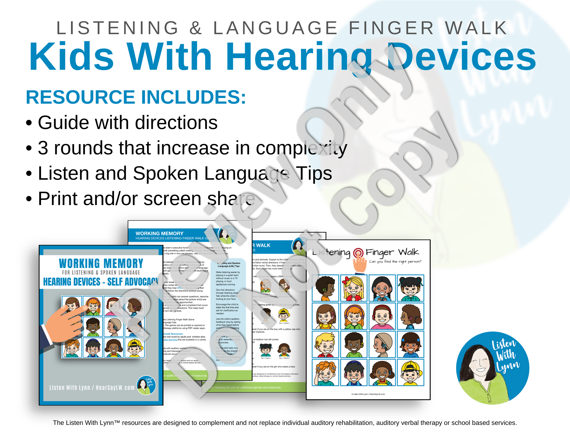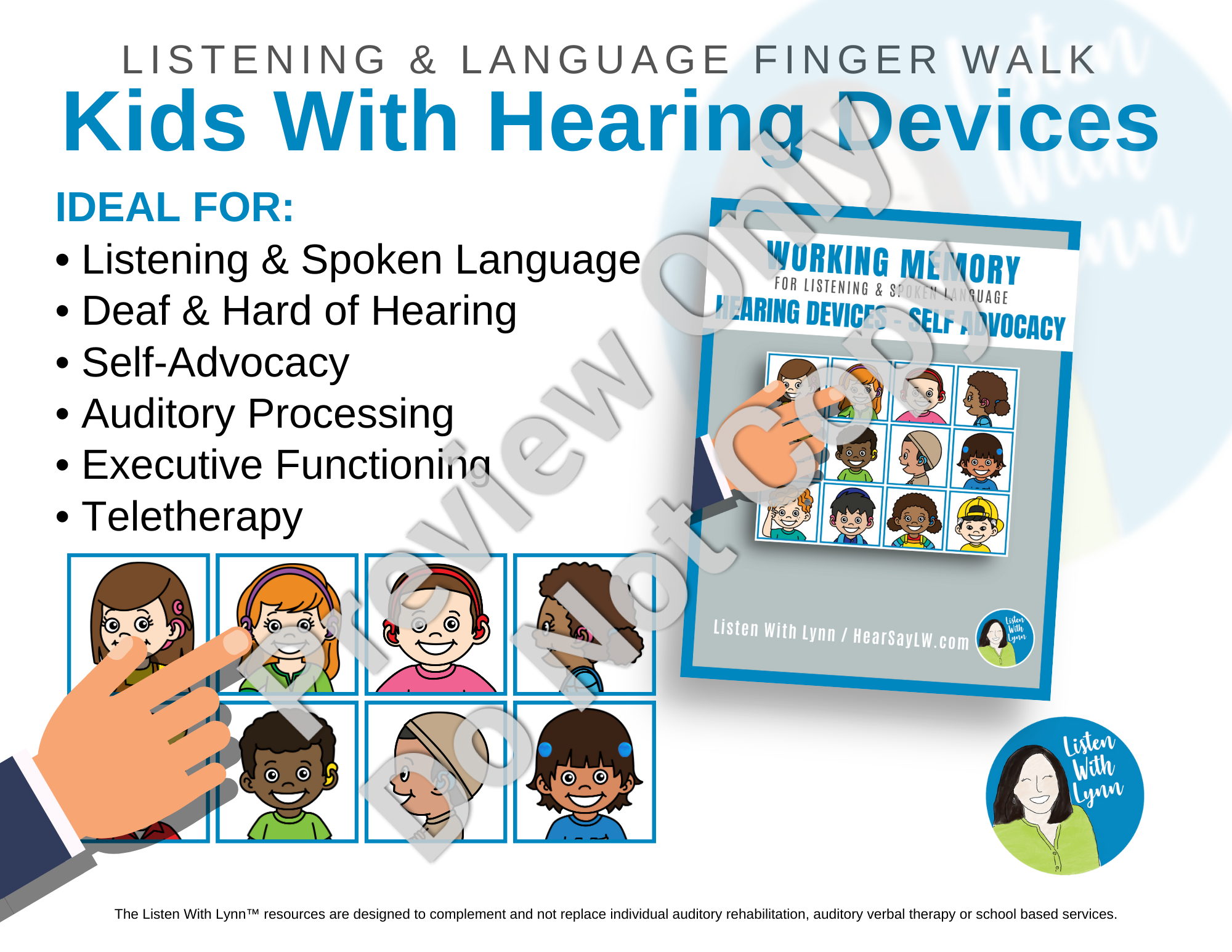 Shop NowIf you have students who are deaf and hard of hearing that need help with auditory working memory, executive functioning, and following directions, this Listening Finger Walk is a must-have! It builds vocabulary about types of hearing loss and hearing devices. It boosts confidence and helps children feel good about their own hearing technology. It's fun for the kids and a simple no-prep resource for you. Just open the PDF on your screen or print it and go!