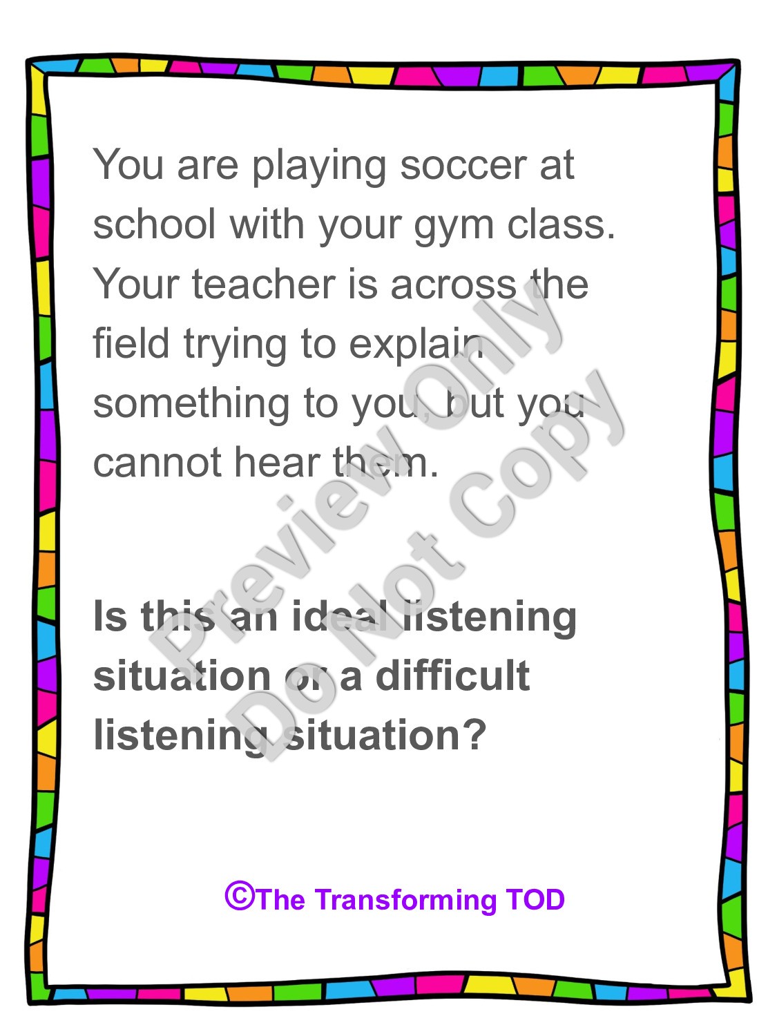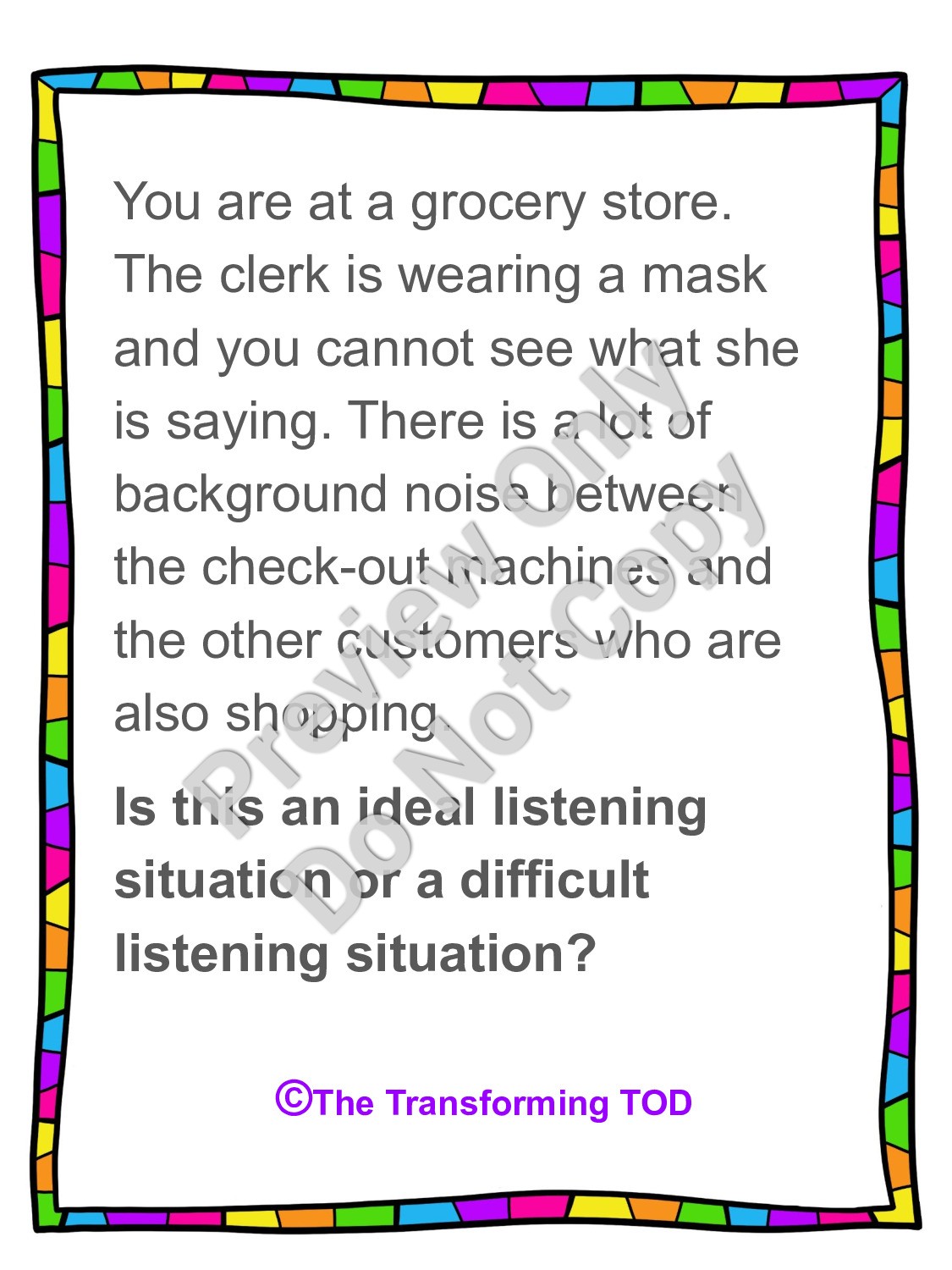 This product contains both of the "Ideal" vs. "Difficult" Listening Scenarios and "Ideal" vs. "Difficult" Listening Scenarios Part 2.