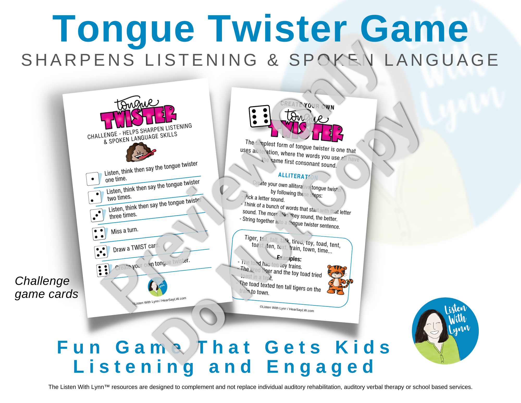 Do you have kids who need practice using clear and natural-sounding speech? The Tongue Twister Challenge Game is hilarious and gets kids listening, moving, and engaged! The game sharpens listening and spoken language skills.