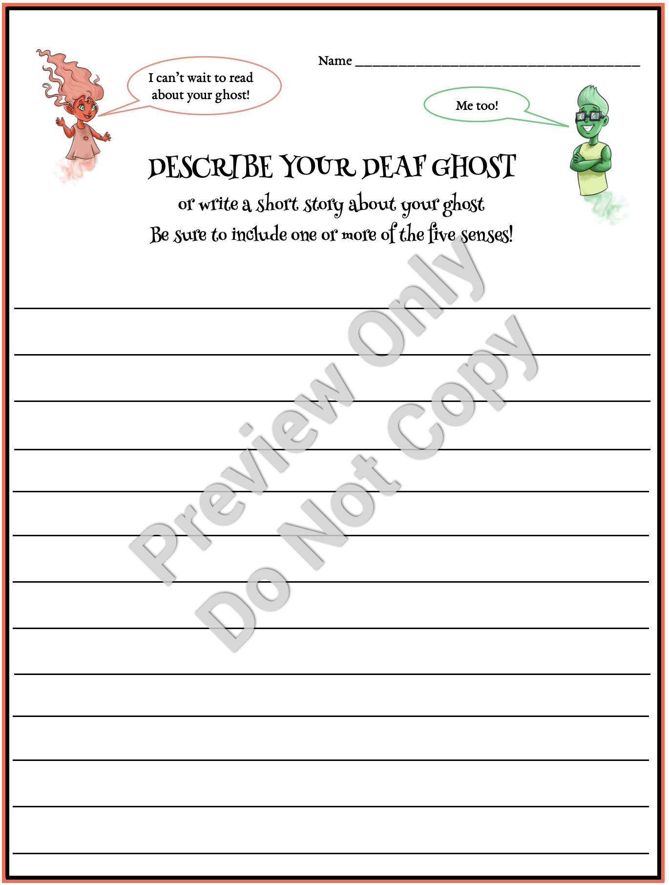 Shop NowPerfect for Halloween or any time during the school year for practicing reading & writing skills! Your students will love this activity where they can create their own deaf ghost based on the five senses! This activity can be done individually, while working with a friend, in a small group, or as a class, and you can tweak this activity to be as simple or as detailed as you want. A perfect activity to keep students' attention in October as Halloween approaches or any time you want a fun reading & writing activity!