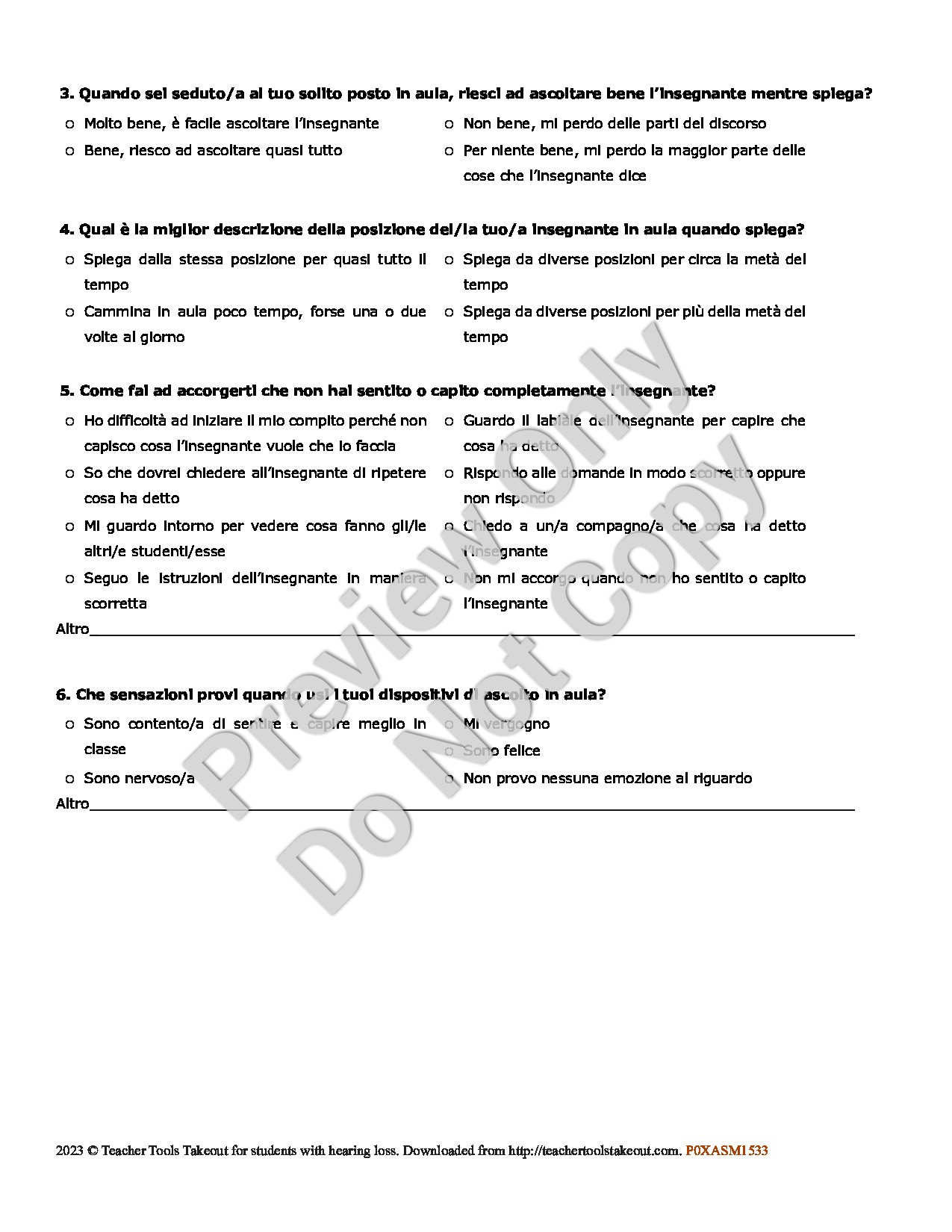 Shop NowItalian translation - Listening Inventory For Education - Revised 15 questions in the Student Appraisal. 5-level response rating level of challenge listening under 15 different classroom and school listening situations.