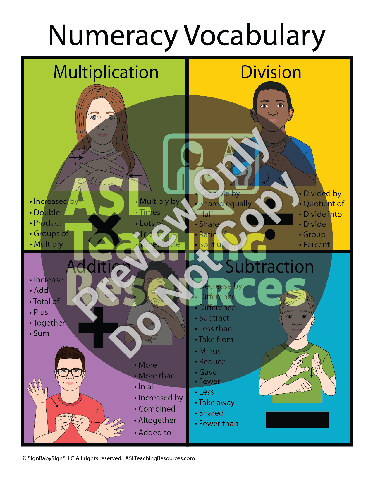Shop NowSign Language Posters Math Set is a unique visual tool to aid in teaching math concepts.
