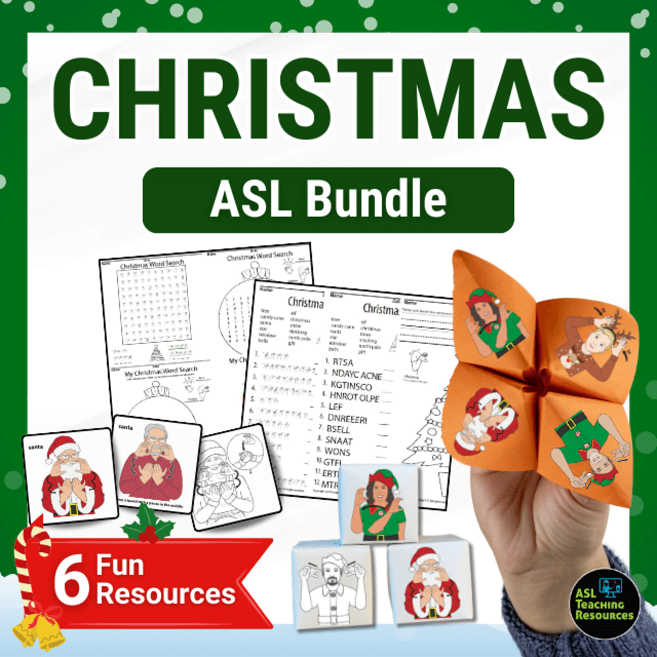 Shop NowAre you ready to take your Christmas signing skills to the next level? The Sign Language Christmas Vocabulary bundle has just arrived from the North Pole! Unwrap the ultimate bilingual Christmas bundle and find flashcards, games, and fingerspelling activities that will have you signing your favorite holiday words in no time.