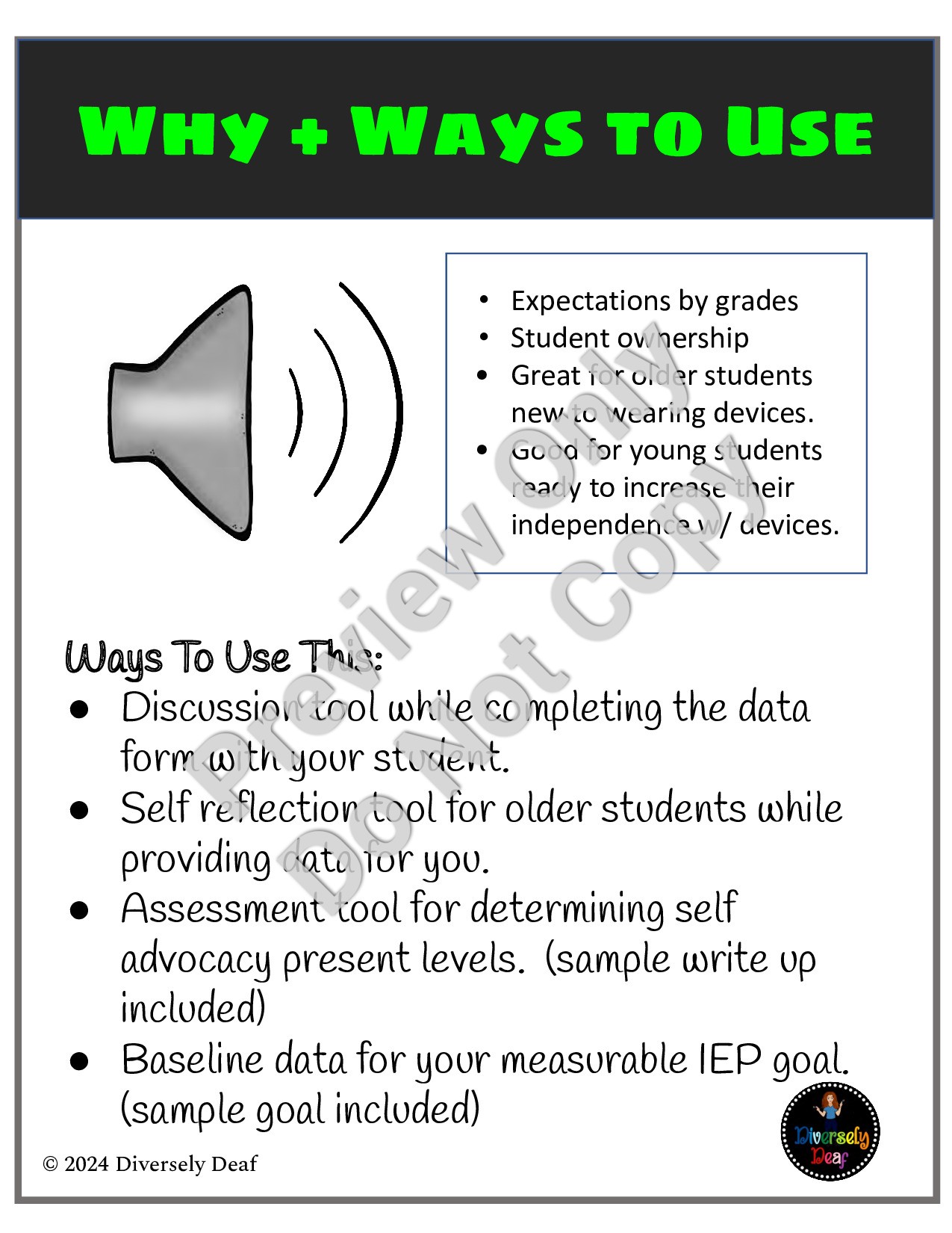 - Assessment tool for determining self-advocacy present levels. (sample write-up included)