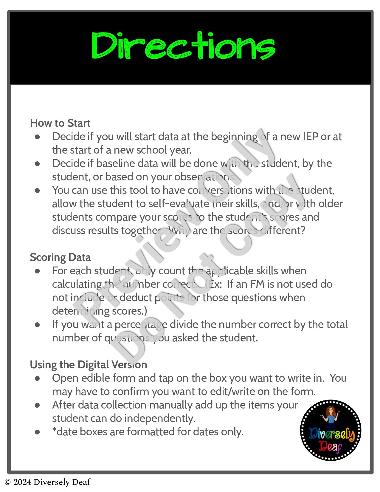 - Baseline data for your measurable IEP goal. (sample goal included)
