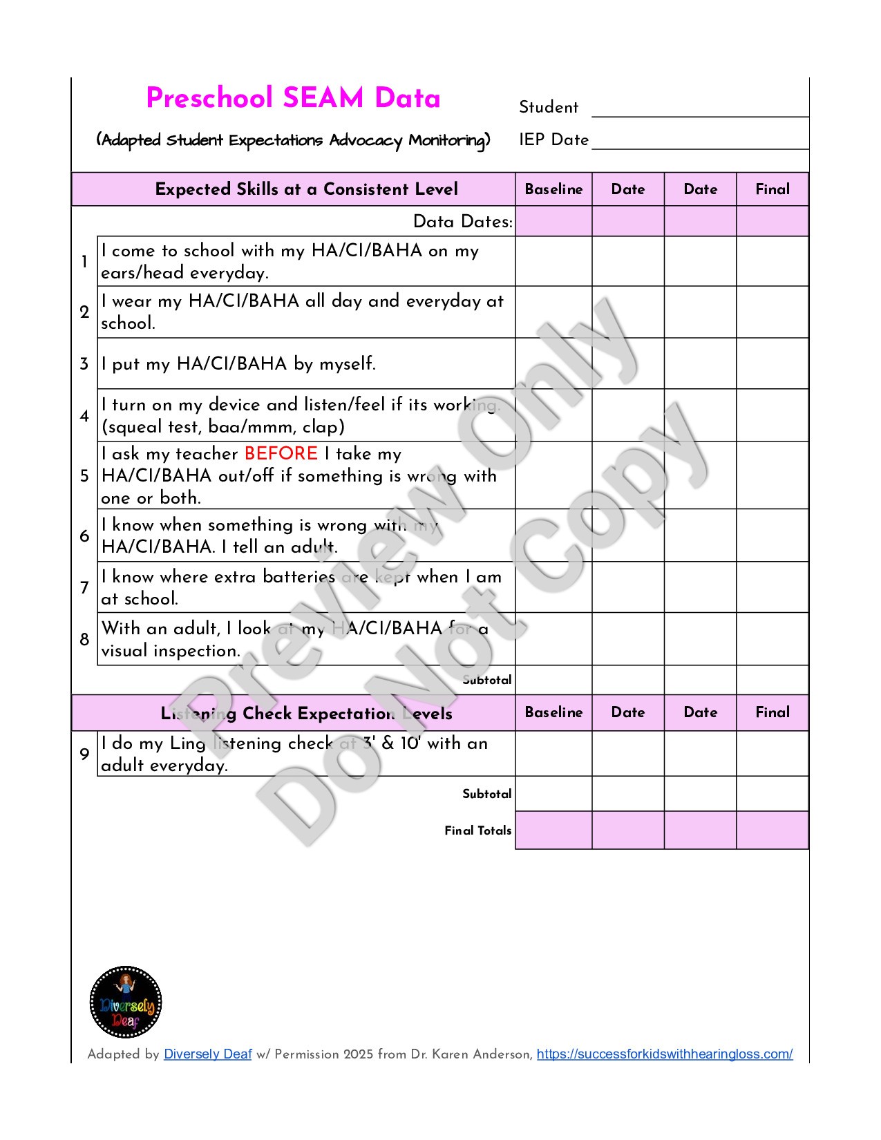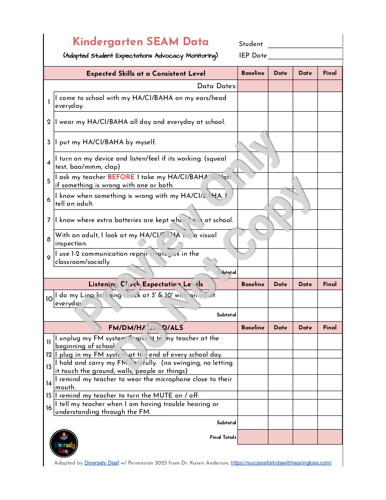 The ADAPTED SEAM uses student-friendly language that activates self-reflective skills, encourages student ownership, and provides an interactive/conversation starter when done with the student. Some students experience an "ah-ha moment" about their responsibility the first time they complete the chart.