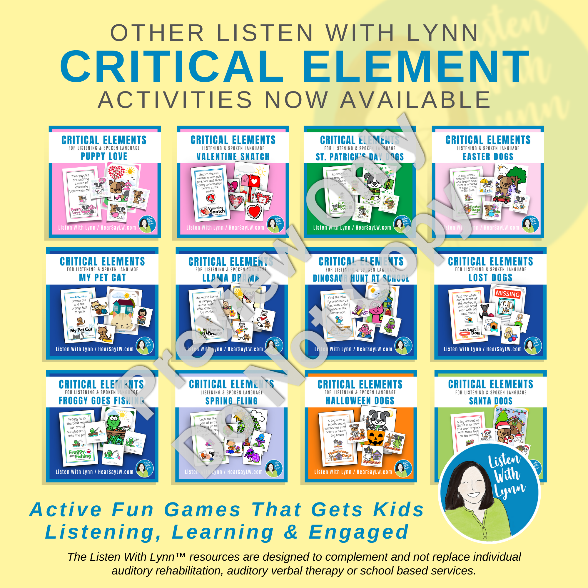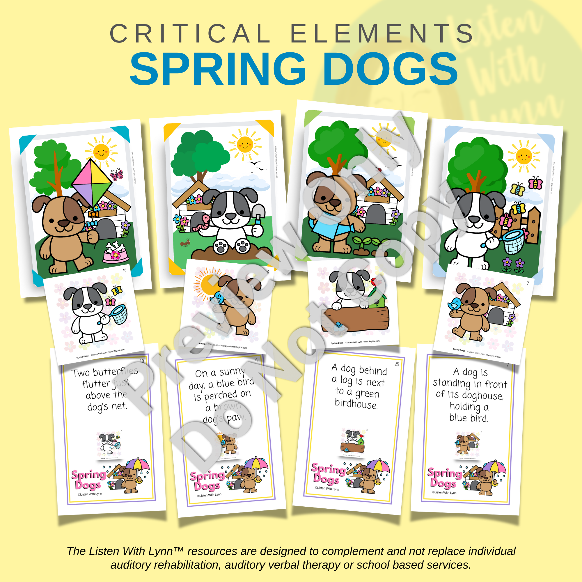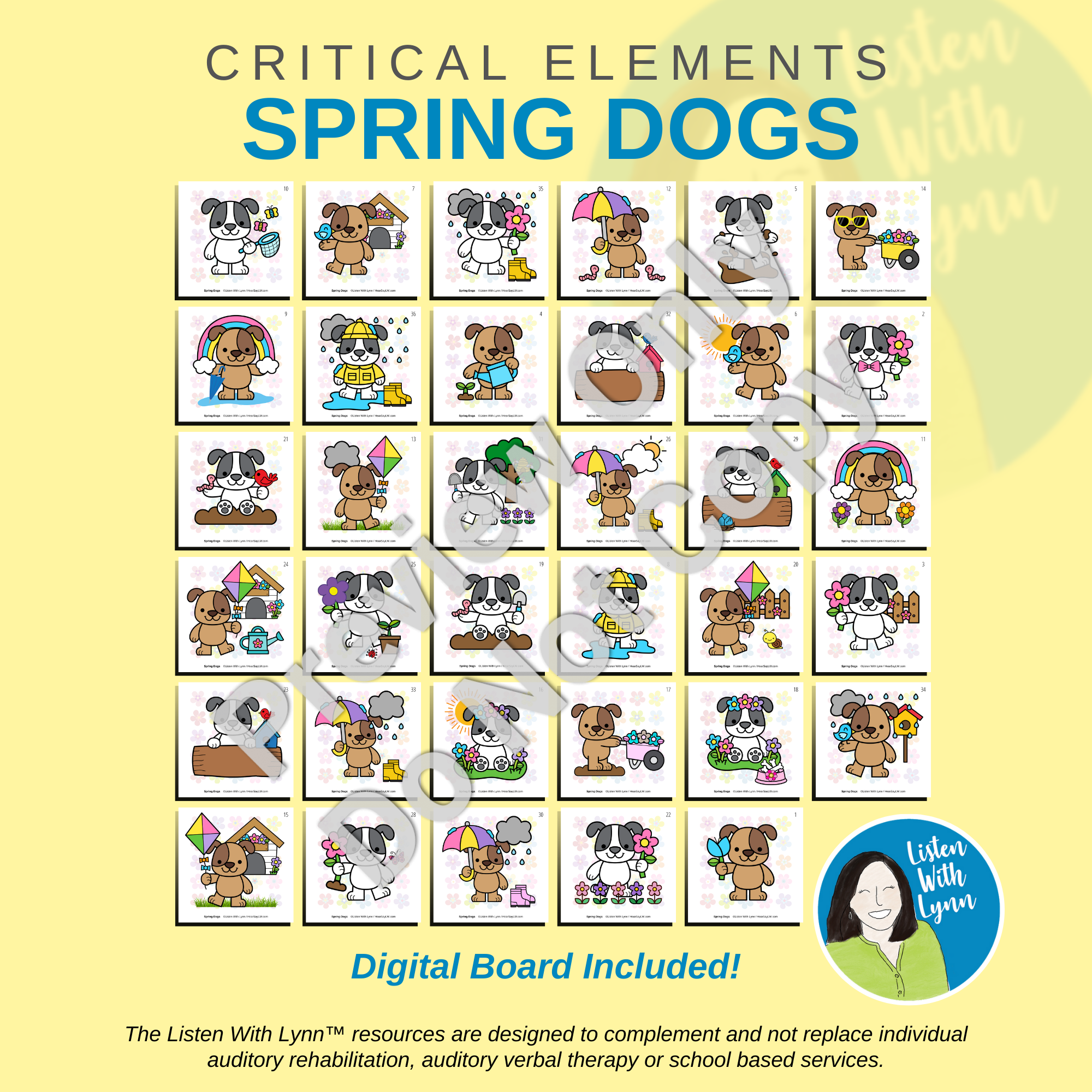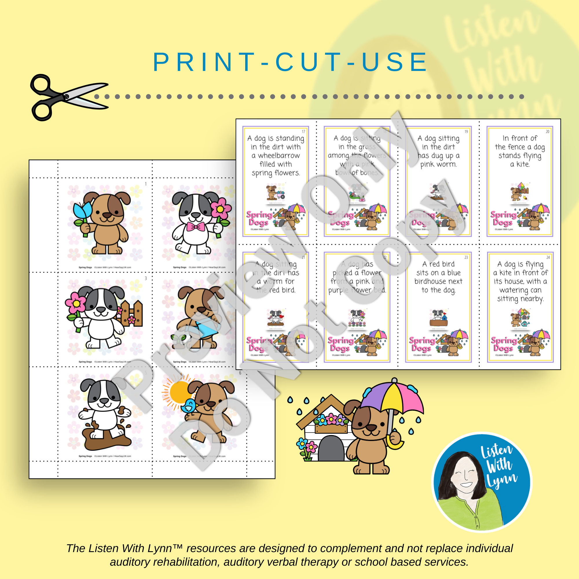 SPRING DOGS is an engaging following-direction springtime game with critical elements that get kids listening and engaged. Kids love the delightful dogs that challenge auditory working memory, comprehension, and auditory processing speed. The game uses descriptions that boost critical thinking, executive functioning, and communication skills.
